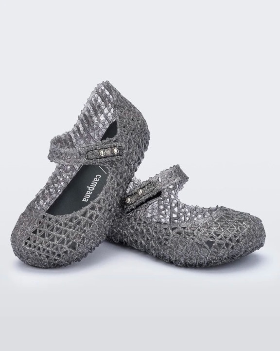 Mini Melissa Campana Papel Flat Baby Glitter Preto